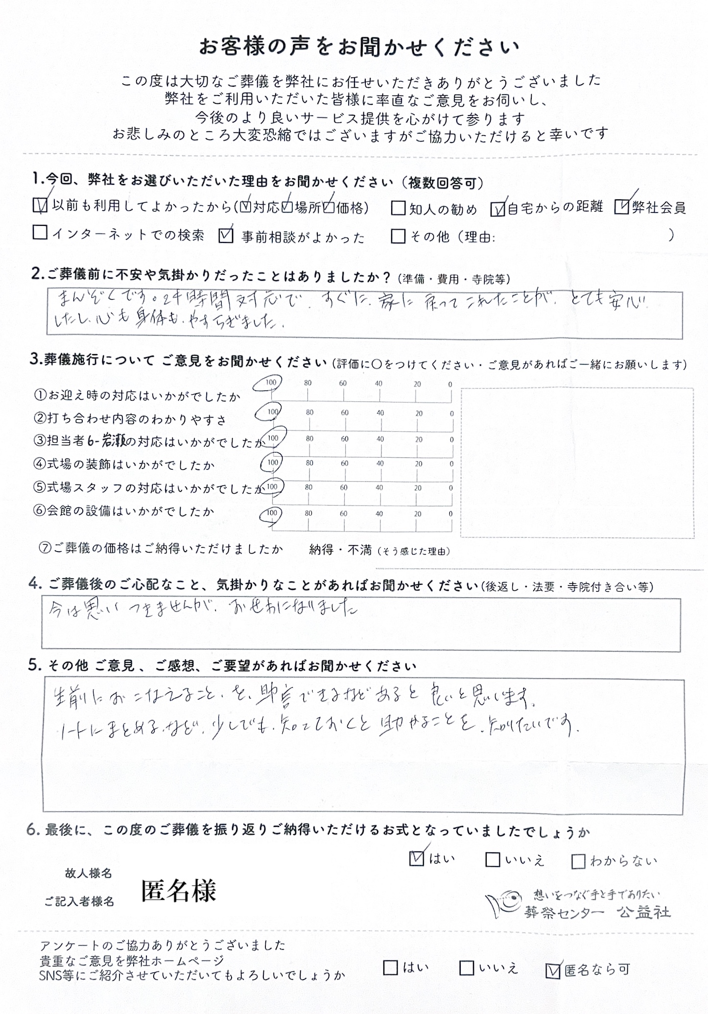 匿名様の葬儀に携わらせていただいたこと、感謝申し上げます。