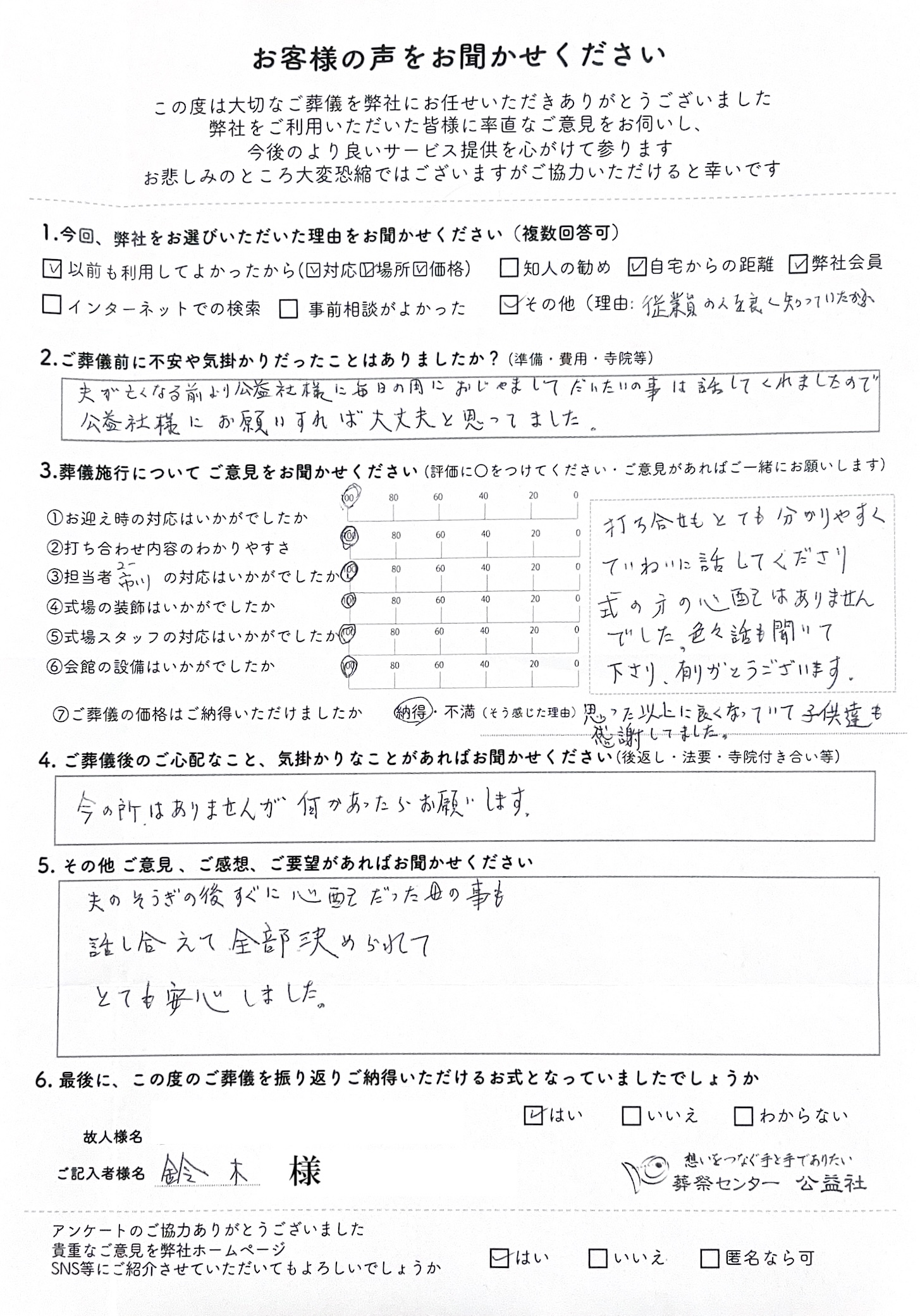鈴木様この度はご丁寧なアンケートのご返送ありがとうございました。