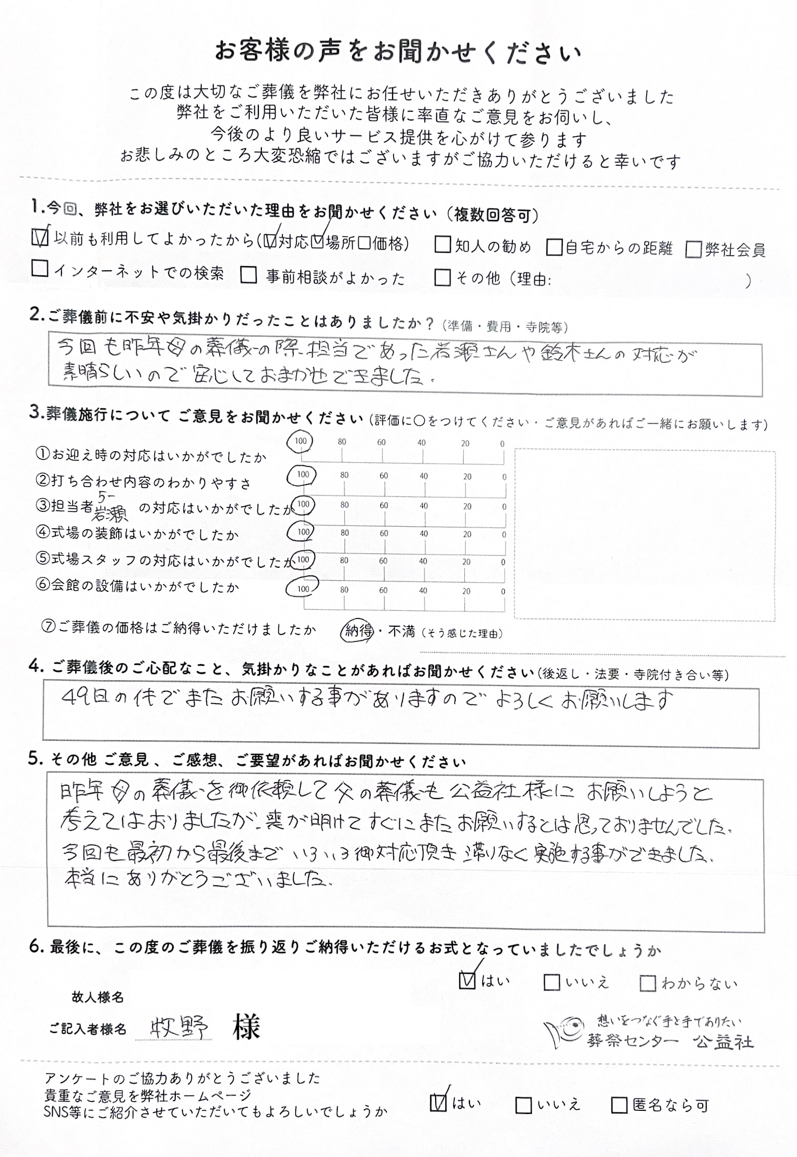 牧野様、アンケートの返信ありがとうございます。