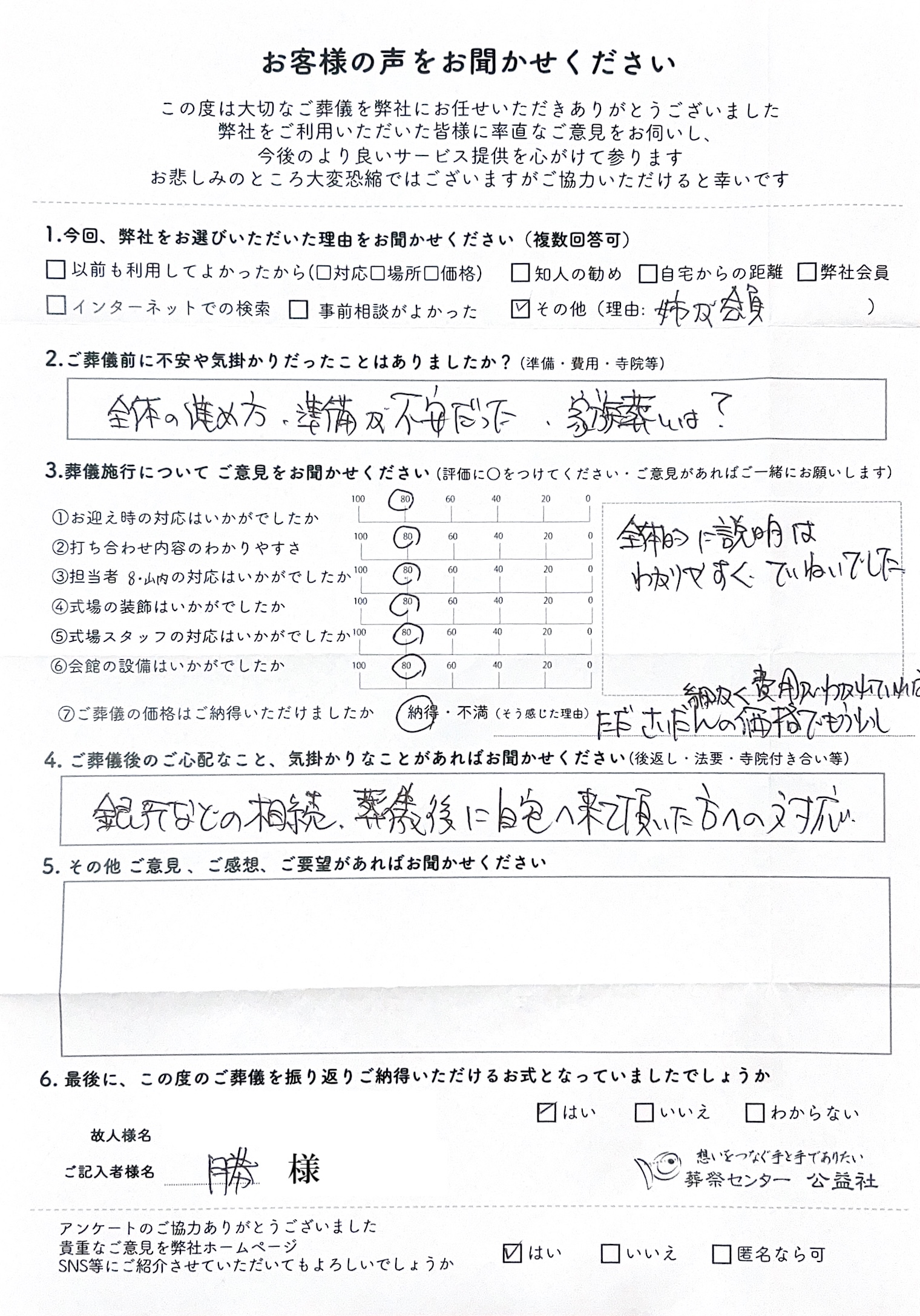 勝様、アンケートのご返信ありがとうございます。