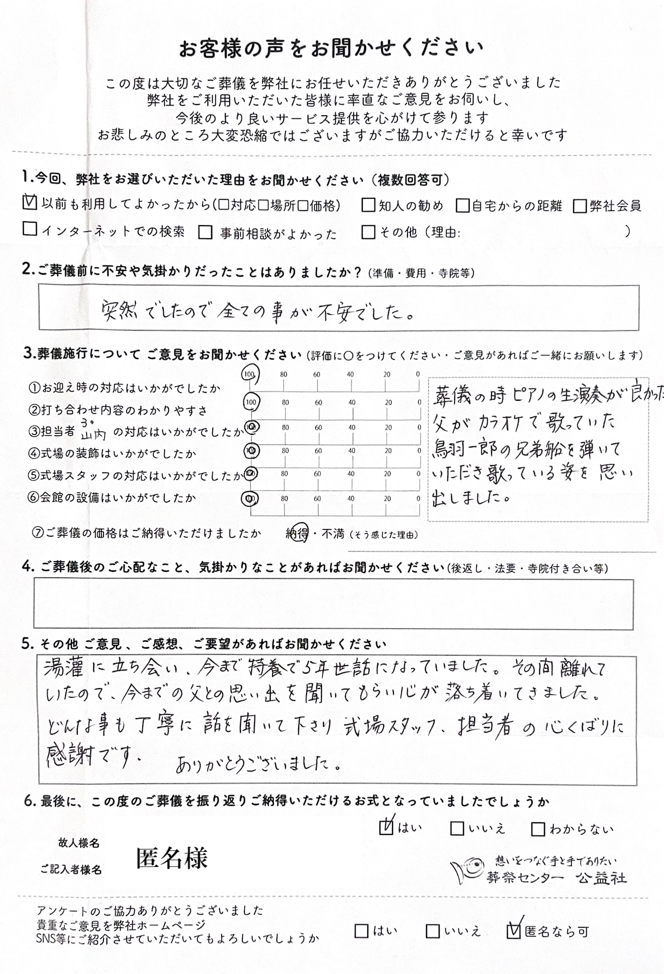 大切なお父様との最後のひとときのお手伝いに、弊社を選んでいただきましてありがとうございました。