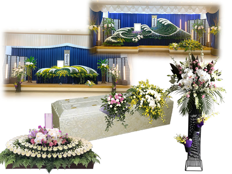 花祭壇の創作には自信がございます。規格品ではなく、ご葬家様だけのオリジナル祭壇をお届けいたします。